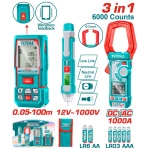 Пълно решение за измервания – този комплект включва лазерна ролетка, ампер клещи и детектор на напрежение, подходящ за електротехници, монтажници, сервизни специалисти и индустриални приложения.